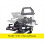 Folding handle for compact storage, takes up less garage space