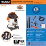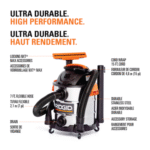 Includes RIDGID 37.5L (10 Gal.) 6.0 Peak Horsepower Wet/Dry Shop Vacuum – best for tackling heavy-duty cleanups